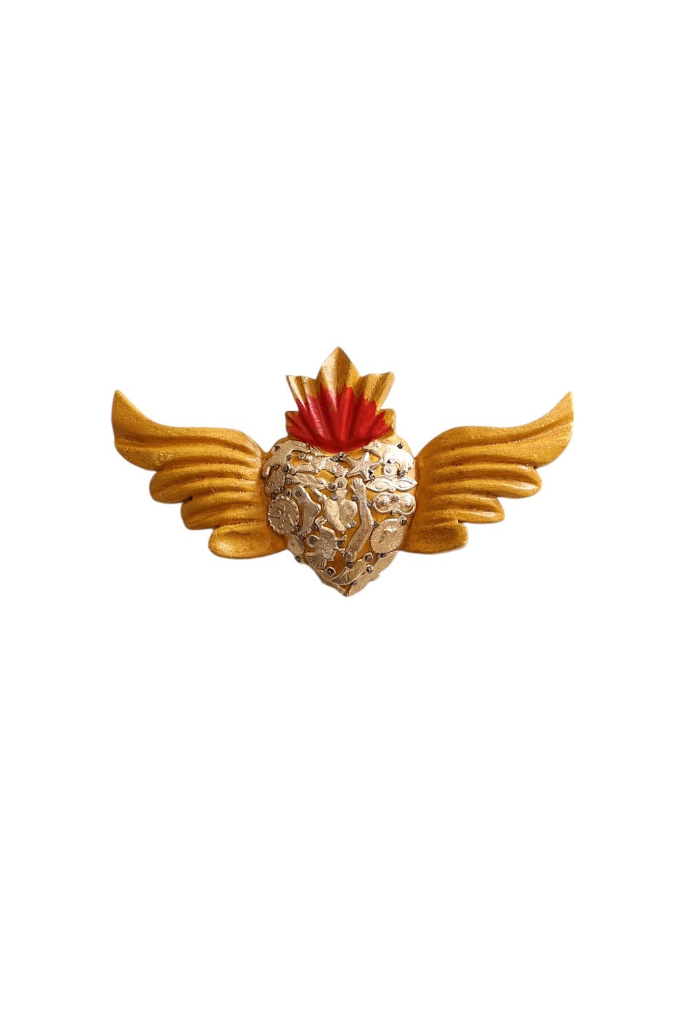 MEXICAN FOLK ART TIN RED HEART WITH GOLD WINGSMEXICAN FOLK ART TIN RED HEART WITH GOLD WINGS- Regular price
