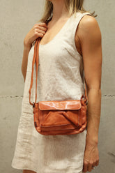 ART N' VINTAGE PRESLEY TAB CROSSBODY LEATHER BAG TAN