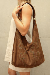 - Large suede leather tote bag in brown leather with shoulder straps