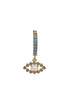 The Take Me Home Huggie earring is a 24K Gold Plated Evil Eye charm with opal and turquoise cubic crystal stones.