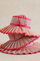 The Capri is specifically designed to collapse and fold like origami, due to the sunray pleats, for ease of travel. Optional ties are provided at the base of each hat to be used for anchoring during breezes.