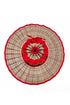 Berry features a playful blend of yellow, blue, ivory, purple and red thread colours woven horizontally through its natural fibre base with red cotton trimming.