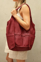 - Large leather tote bag in Samba Red leather with shoulder straps