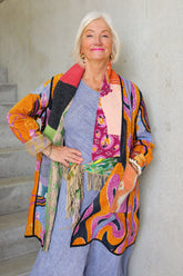 KANTHA COAT REVERSIBLE PATCHWORK GREEN DIAMOND