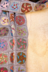 Patchwork circles in joyful and muted shades from soft pink, olive and navy to name but a few! Sophie has been described as a master colourist, evident in the beautiful hand-dyed shades in this piece.