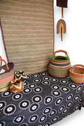 AFRI BEADS WAX PRINT TABLECLOTH BLACK AND WHITE CIRCLES
