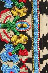 - Hand-sewn beadwork with intricate detailing