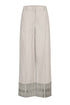 Our Marlene trousers SALIN 1 impress with their overly long shape and the flat, quilted pleats. The high waistband and the simple workmanship harmonize with the handmade screen print on the trouser hem. The trousers are part of our MADEFOR capsule. This embodies the sustainable approach that we have been pursuing since the company was founded.