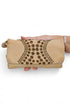 - Featuring a stud and eyelet pattern scattered on the front foldover opening and magnetic closing