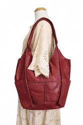 - Large leather tote bag in Samba Red leather with shoulder straps