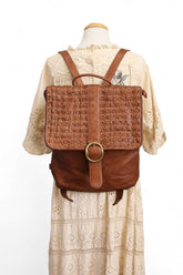 ART N' VINTAGE LUCY FOLDOVER LEATHER BACKPACK OAK