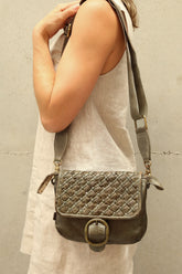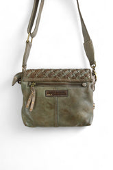 ART N' VINTAGE LUCY FOLDOVER LEATHER SATCHEL BAG MARTINI OLIVE