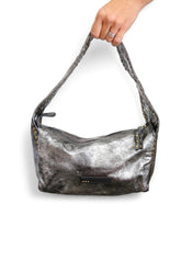ART N' VINTAGE MEISHA METAL LEATHER SLOUCH BAG METAL