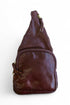 Made using white raw leather, then dip dyed and tumbled to achieve a weathered effect – this leather will soften with wear. All marks are natural markings on the leather which is picked up by the dye.