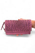 - Featuring a pattern woven scattered on the front foldover opening and magnetic closing