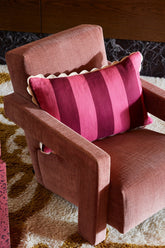 Taking inspiration from carefree summer days and retro aesthetics, the Big Stripe Cerise Cushion blends these influences in a playful way. Designed to sit alongside vivid florals and textured boucle on a sofa, this pink striped cushion can also feature on its own as a statement piece.