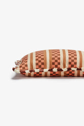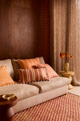 Bold geometry meets earthy warmth in this terracotta linen cushion, echoing the tiled floors of Moroccan courtyards. A grounding layer for vibrant or neutral interior