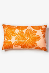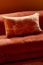 With its carved wood block appearance, the design for the Margot Tan Cushion takes its inspiration from traditional woodcutting and printmaking techniques. Featuring oversized flowers and leaves in a warm two-toned palette, this tan and peach floral cushion pairs beautifully with bold patterns and vibrant stripes.