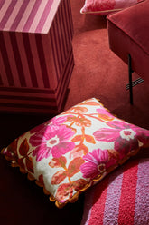 With its modern spin on a classic romantic garden, the Rosetta Pink Cushion captures the intricate beauty of rose arbours with their cascading blooms. In a vivid colour palette inspired by the seventies, this pink floral cushion brings style to your lounge room. Style this vibrant pattern with bold stripes and hand painted florals.