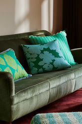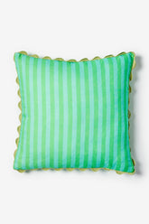 Inspired by colourful wrappers found on decadent confectionery, the Thin Stripe Jade Cushion brings colour and style to your living space. Pair this striped jade cushion with hand painted florals and wider stripes in boucle or linen.