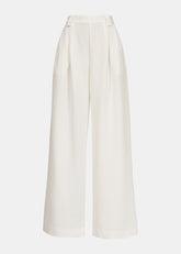 Pants are cut from a recycled polyester enhanced with a hint of stretch for a comfortable fit. The relaxed silhouette is topped with an elasticated waistband and has been smartly detailed with pleats at the waist that fall into soft folds down the wide legs.