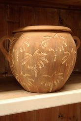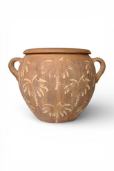 A one of a kind finish is created with the terracotta Bermuda pots, with hand carved palm trees, not one vessel will be alike. Create a tropical vibe in your space and add a monstera or your favourite fern for instant cool.