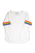 Long sleeve cotton t-shirt with rainbow stripes on the arms, boyfriend fit.