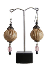 Gorgeous gold fabric ball drops with brass findings and hooks complete with Swarovski crystals and Bohemian glass beads