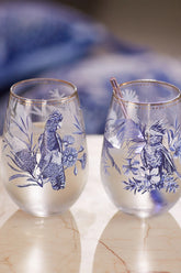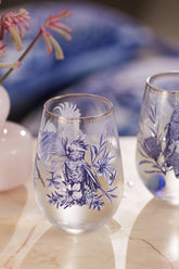 Each tumbler is a work of art in itself. The delicate glassware is adorned with Laura Ramos' captivating illustration, depicting Australian native florals and animals in a chinese blue ink inspired form. The meticulous attention to detail, combined with the addition of shimmering gold foil accents, creates a truly enchanting set of glasses.