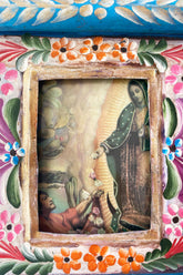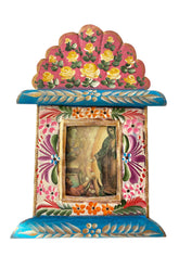 MEXICAN TIN HAND PAINTED FLORAL FRAME VIRGIN MARY