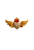 MEXICAN FOLK ART WOODEN HEART & WINGS W/MILAGROS YELLOW