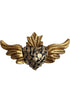 Wooden heart with intricate hand cut gold wings. With a hook on the back for easy hanging.