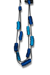 Monica Krexa's necklace is made in Brazil and crafted from lightweight recyclable anodized aluminium. Vegan leather band is adjustable.