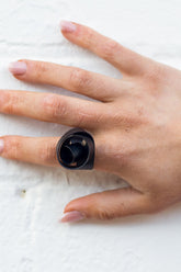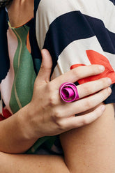 Made in Brazil and crafted from lightweight recyclable anodized aluminium these unique rings add an edgy-cool to any look. The ring size can be adjusted to wear on any finger.