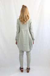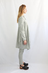 Olive check zip up Jacket. Pockets with collar. Cocoon style from waist down.