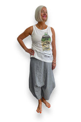 Sleevless light weight cotton printed Top. Featuring a painted Rundholz graphic. Symmetrical sewn in panels at the back creating a relaxed fit from the waist down.