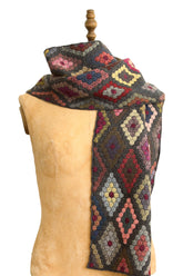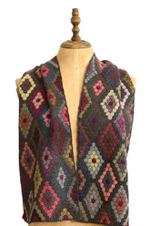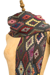 Fine gauge crochet wool scarf featuring rows of patchwork pieces in the subtlest of hues from rust to pastel blue. The colours of this piece are so divine. Sophie has been described as a master colourist, evident in the beautiful hand-dyed shades in this piece.