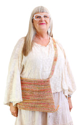 Hand crafted macramé raffia bag in delicious shades of pinks citrus, peach, tangerine and neutrals. With an internal pocket this bag has ample space for all of life's essentials. Sophie has been described as a master colourist, evident in the beautiful hand-dyed shades in this piece.