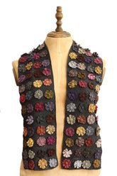 SOPHIE DIGARD MEDIUM CROCHET SCARF CHARCOAL WITH FLOWERS