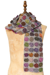 Pretty little colourful flowers make up this divine wool scarf, sitting neatly in rows on a beautiful charcoal background. The colours of this piece are so divine. Sophie has been described as a master colourist, evident in the beautiful hand-dyed shades in this piece.