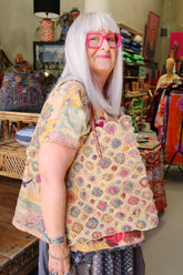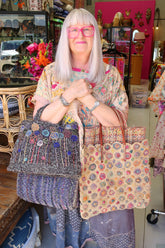 Hand crocheted raffia bag in delicious shades of pink, blue, green and neutrals. With an internal pocket this bag has ample space for all of life's essentials and leather handle. Sophie has been described as a master colourist, evident in the beautiful hand-dyed shades in this piece.