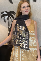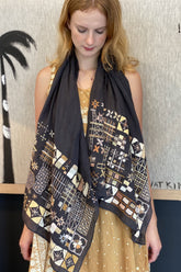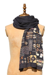 SOPHIE DIGARD PATCH SLATE LINEN SCARF