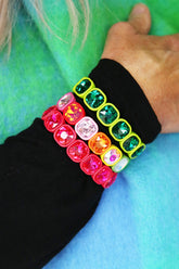 Elasticated pink gemstone bracelet to add a pop of fun and colour to your outfit. Stack them for a statement look or simply wear alone.